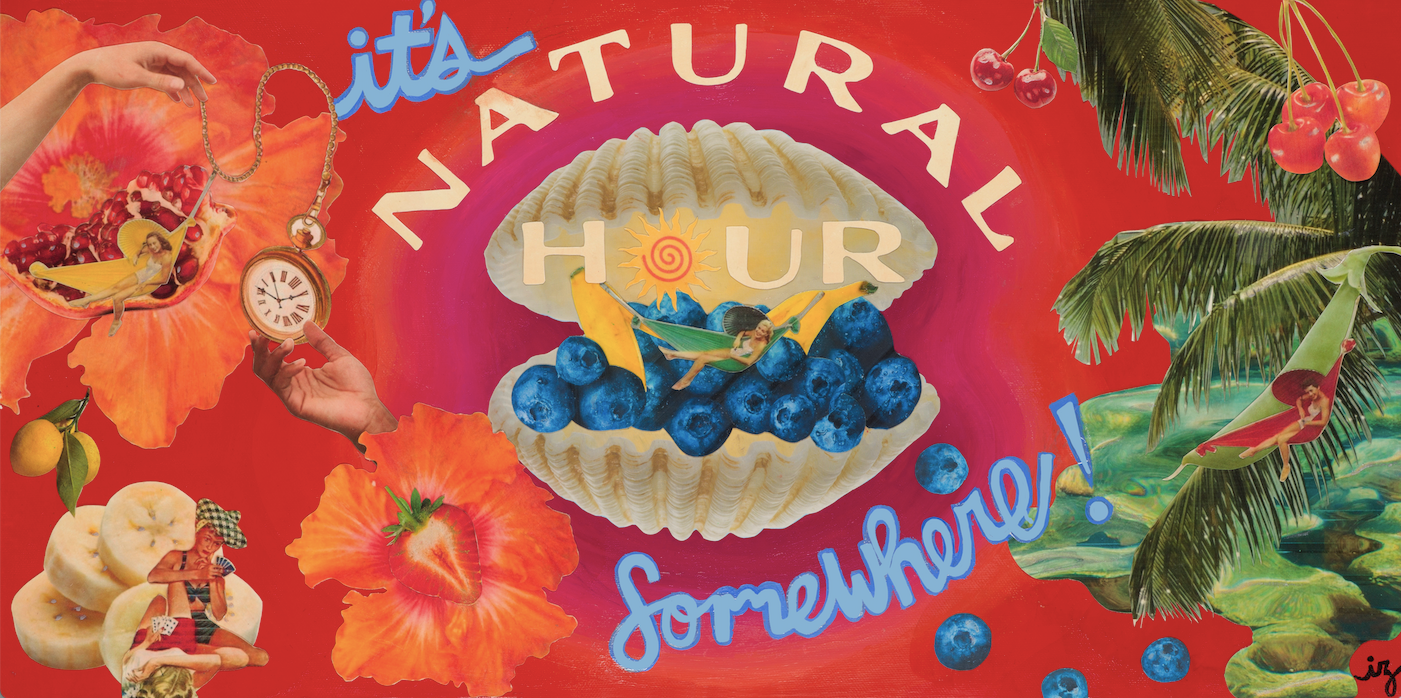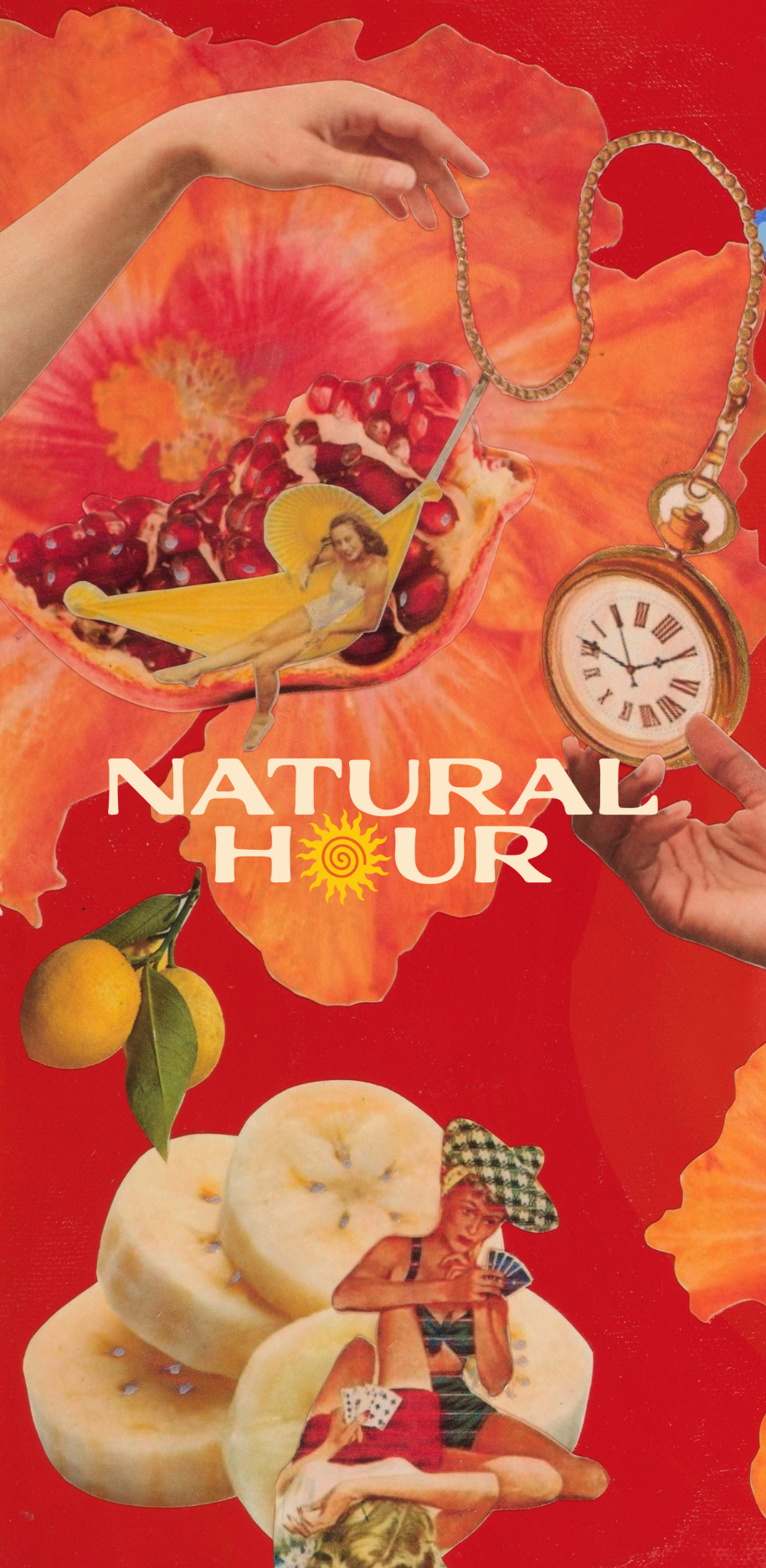I created this collage to celebrate Natural Hour's roots and ongoing mission: making fresh, healthy food accessible to all. Through bold colors and playful imagery, the piece honors fruit and relaxation as everyday luxuries—simple joys that everyone deserves. Inspired by their story and community-driven spirit, the artwork is a visual love letter to nourishment, creativity, and the belief that there is always "time" for care to be shared.